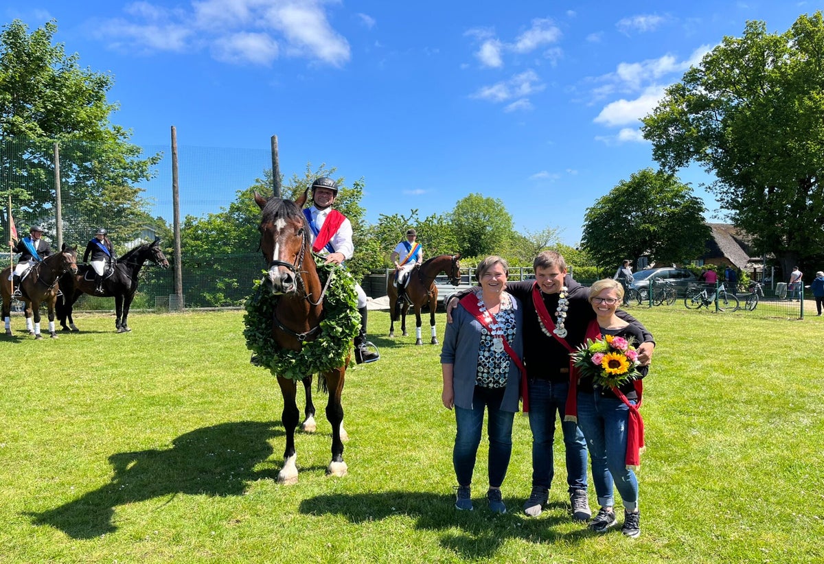 Bei den Ringreitern waren es sogar 4 Starter mehr als im Jahr zuvor. „Eine tolle Entwicklung und entgegen dem Trend in umliegenden Vereinen“, freute sich der 1. Vorsitzende Ralf Kelder, da gerade die Sparte der Reiter es durch Corona und den Wegfall von Verleihpferden sehr schwer hat. Frank Nommensen als Feldführer begrüßte morgens noch einmal die alten Könige von 2021 bevor dann beim Vogelschießen, Kleinkaliberschießen auf der vereinseigenen 50m Bahn, beim Bierkrugkegeln und beim neuen Weltkulturerbe Ringreiten neue Majestäten und Preisträger gesucht werden. Zahlreiche Zuschauer verfolgten mit Zuspruch und Beifall die gezeigten Leistungen und die Proklamation am Ende. Verköstigt wurden alle vom Dörpskrog Ahrenshöft mit Falk Christiansen und seinem Team. Für die Kinder war eine Hüpfburg parat und auch der tolle Spielplatz gleich neben der Festwiese lockte mit Abwechslung. Natürlich ist so ein Fest nichts ohne die fleißigen Hände der Helfer, die sich den Dank der Aktiven redlich verdient haben.