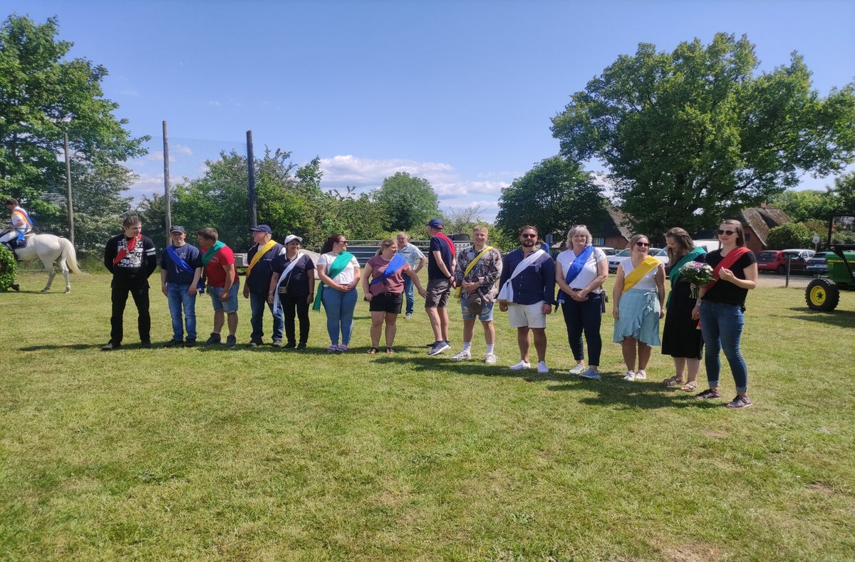 Beim Ringreiten mit tollen 18 Teilnehmern wurde Beanca Düring, nach einem Umreiten mit Marina Schulz, neue Königin. Der erste Preis und auch der „Tagesbestenpokal“ ging an Ralf Kelder. Ein weiteres Umreiten musste den zweiten Platz entscheiden. Hier setzte sich Chiara Dux, die ebenfalls den KO-pokal gewann, gegen Thorsten Petersen durch, der somit Dritter wurde. Der Vorjahreskönig Dieter Tudsen rundete als Vierter das Bild der Schärpenträger ab.